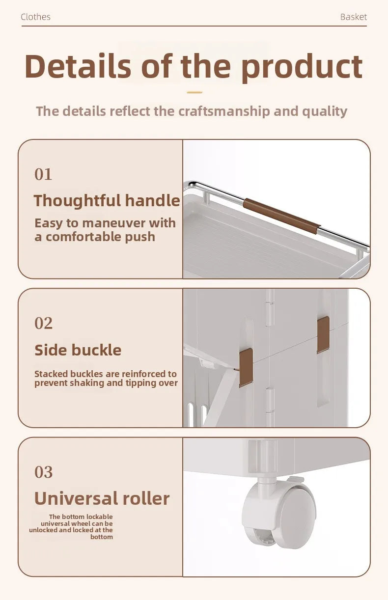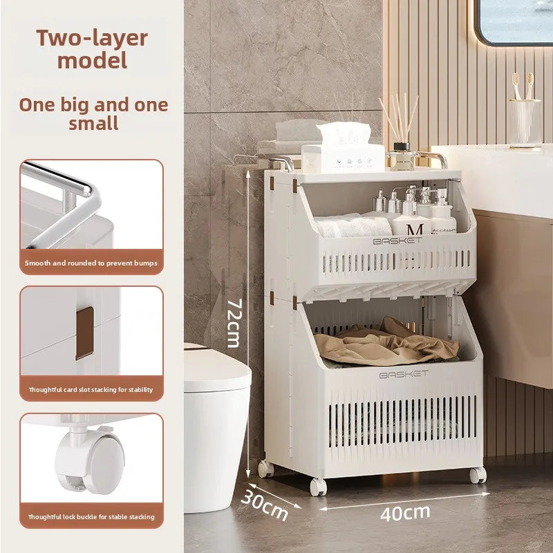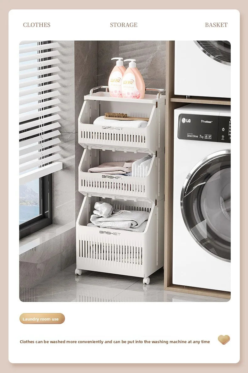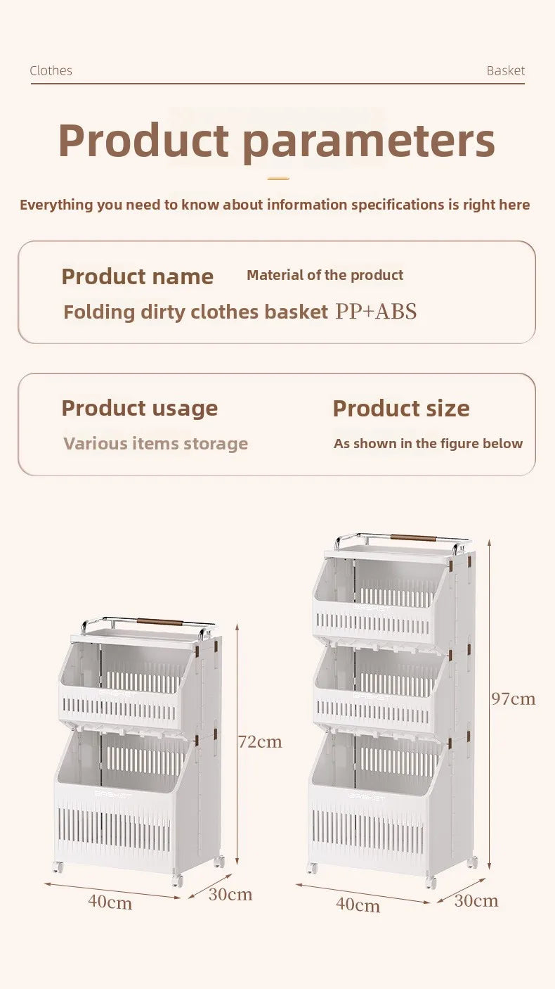Laundry basket, household multi-tier storage shelf, handcart,clothing classification and storage,portable wheeled laundry basket