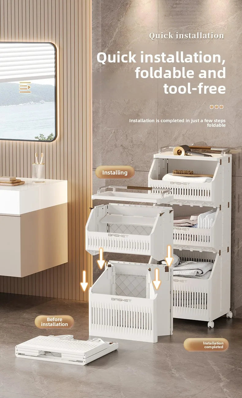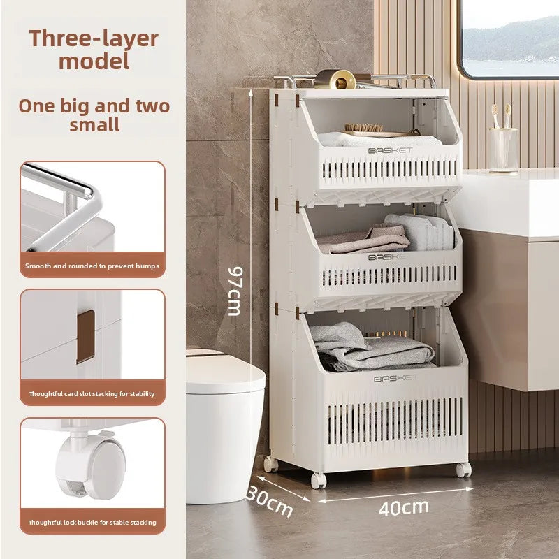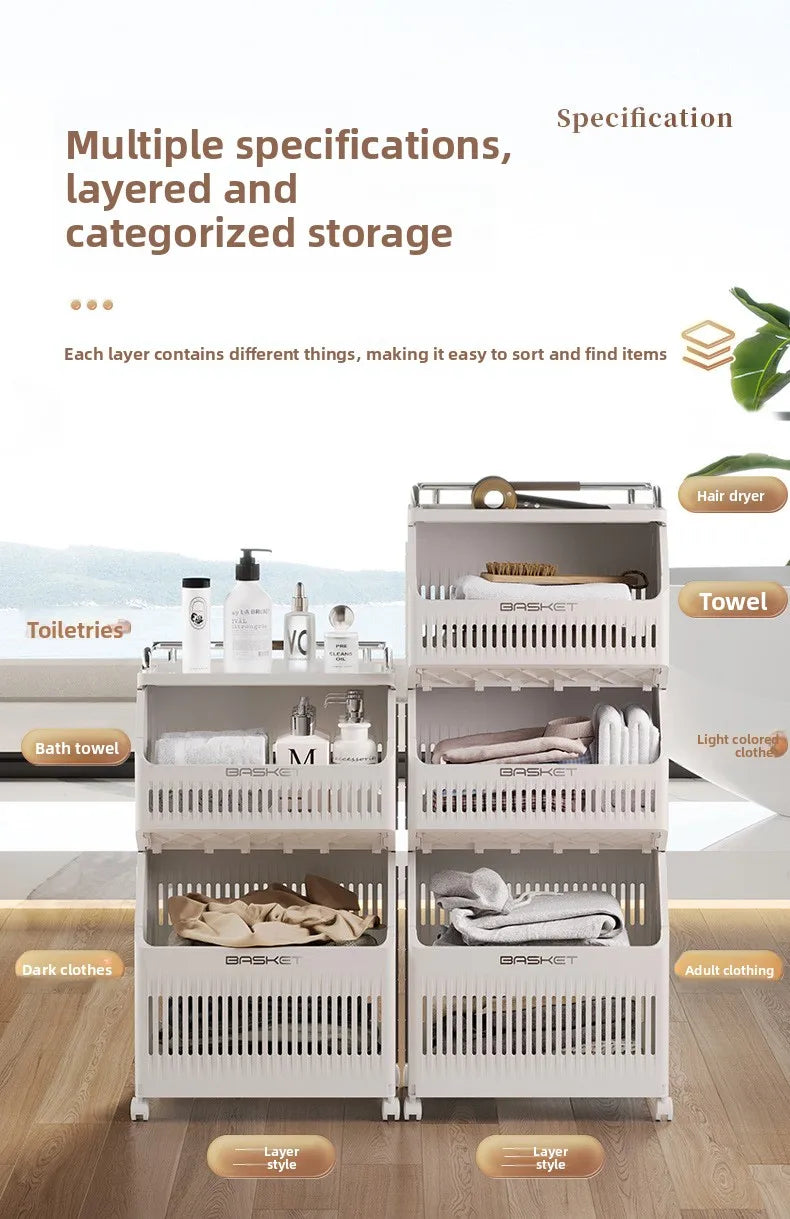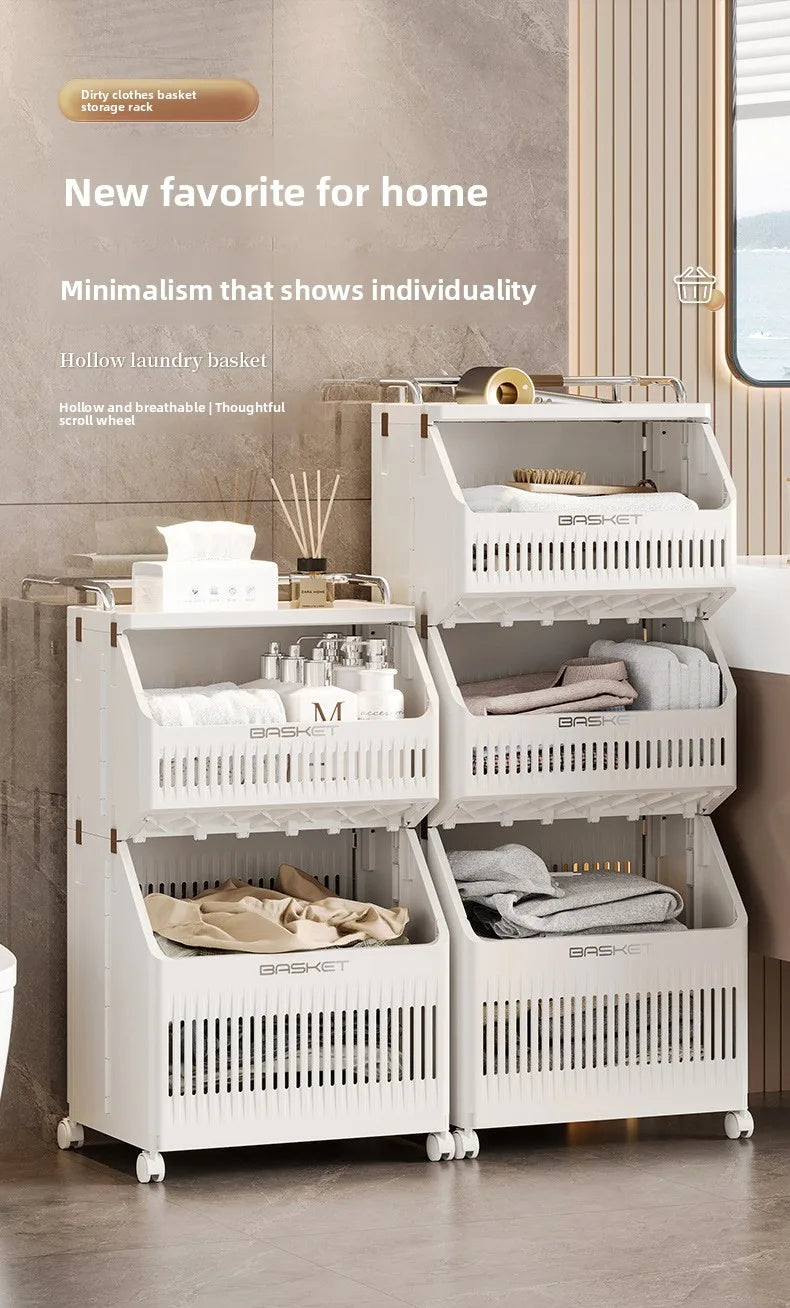 Laundry basket, household multi-tier storage shelf, handcart,clothing classification and storage,portable wheeled laundry basket