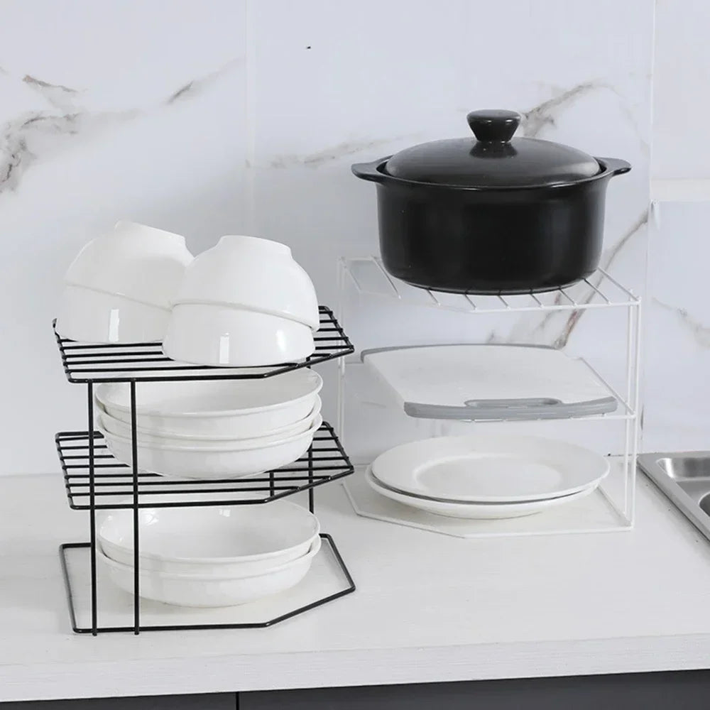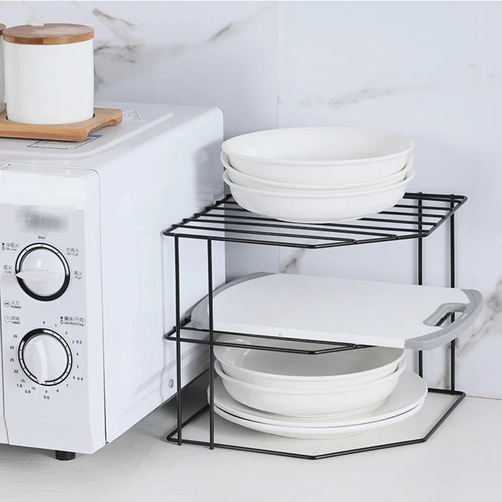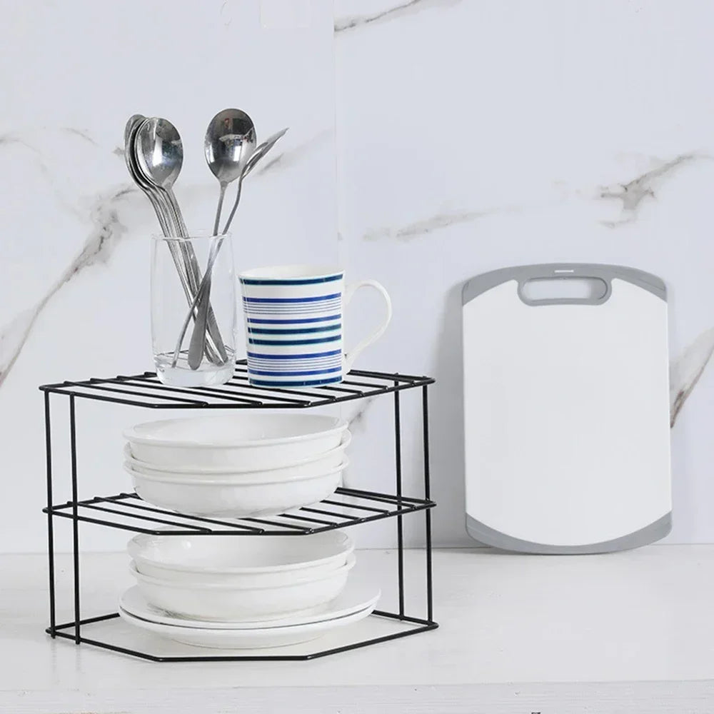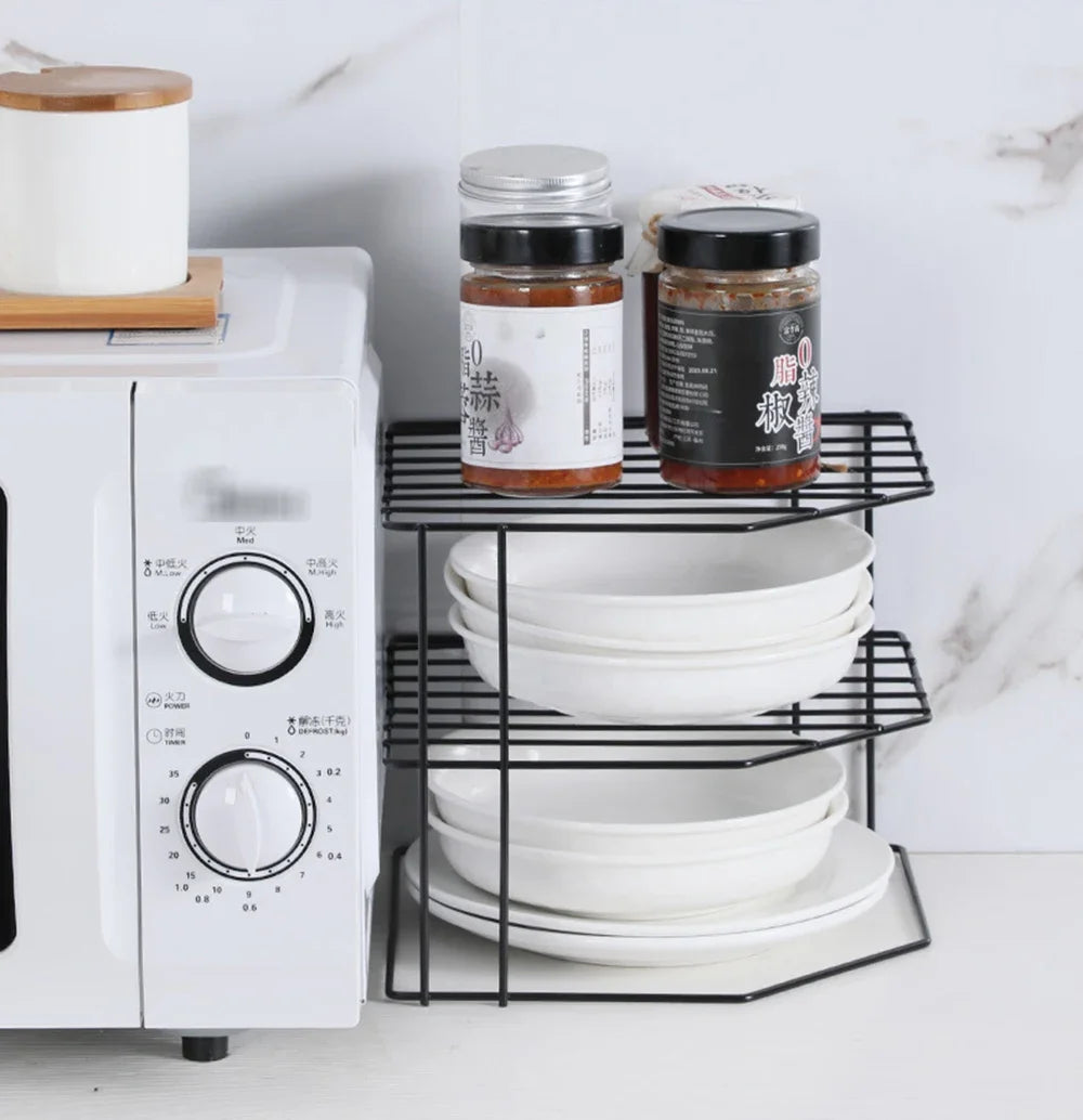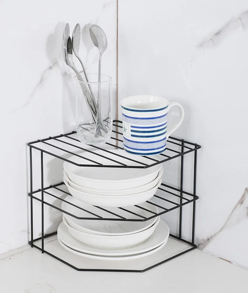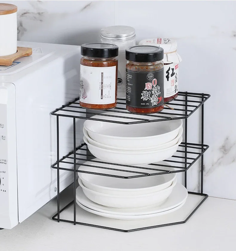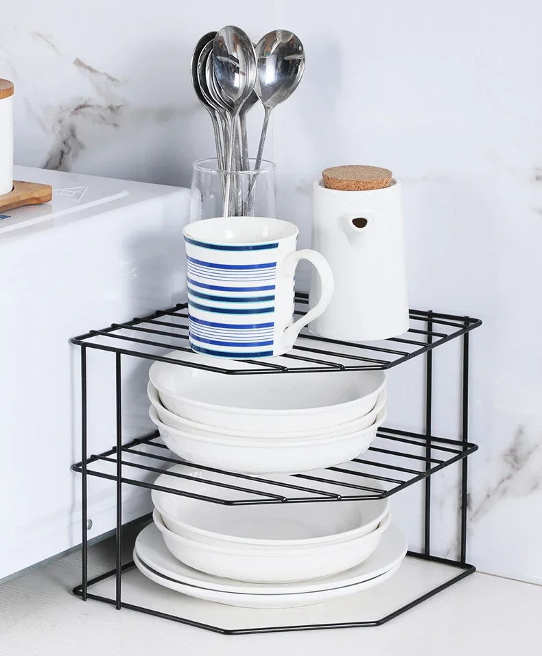 Kitchen Storage Corner Shelf Seasoning Pot Bowl Dish Glasses Countertop Organizer Rack 3 Tier Removable Cosmetic Makeup Holder