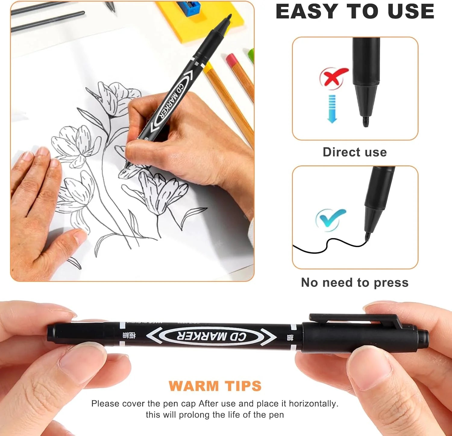 10-Piece Double-Ended Brush-Tip Marker Set Black/Red/Blue Drawing Set Ideal for Painting, Sketching, Writing, and Doodling
