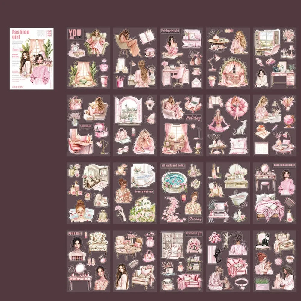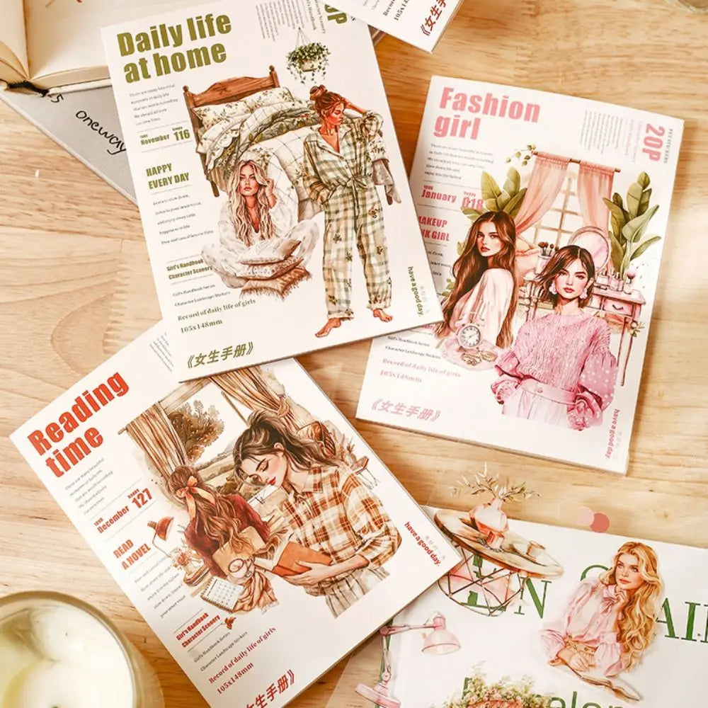 20 Sheets PET Die cut Stickers book Girl&