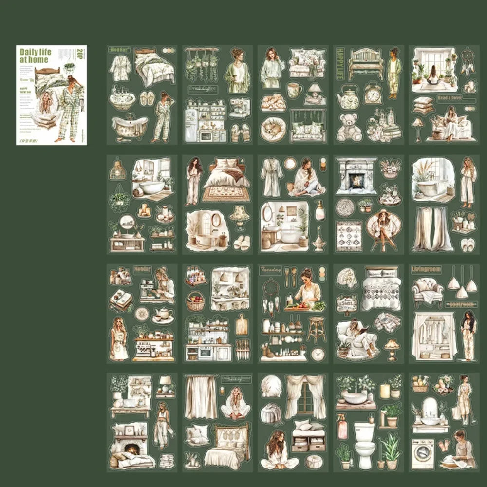20 Sheets PET Die cut Stickers book Girl's Handbook Decorative handmade Scrapbooking Material Diary Album Craft Supplies