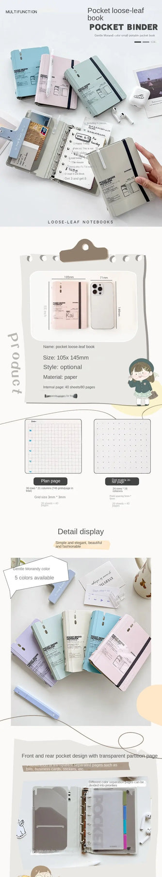 40 Sheets Pocket Binder Diary Journal Planner Notebook A7 Loose-leaf Business Office Notebook Journal School Stationery