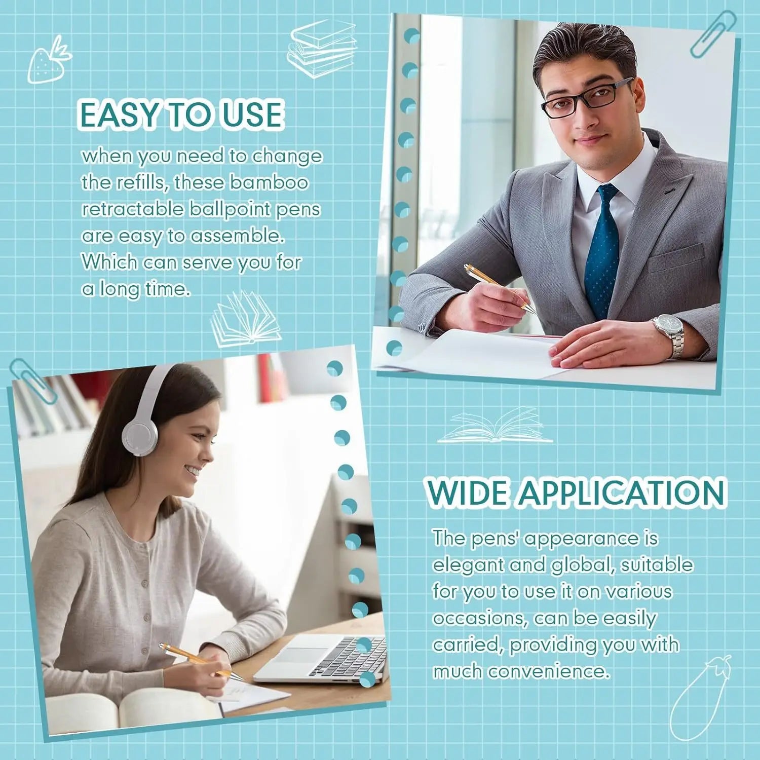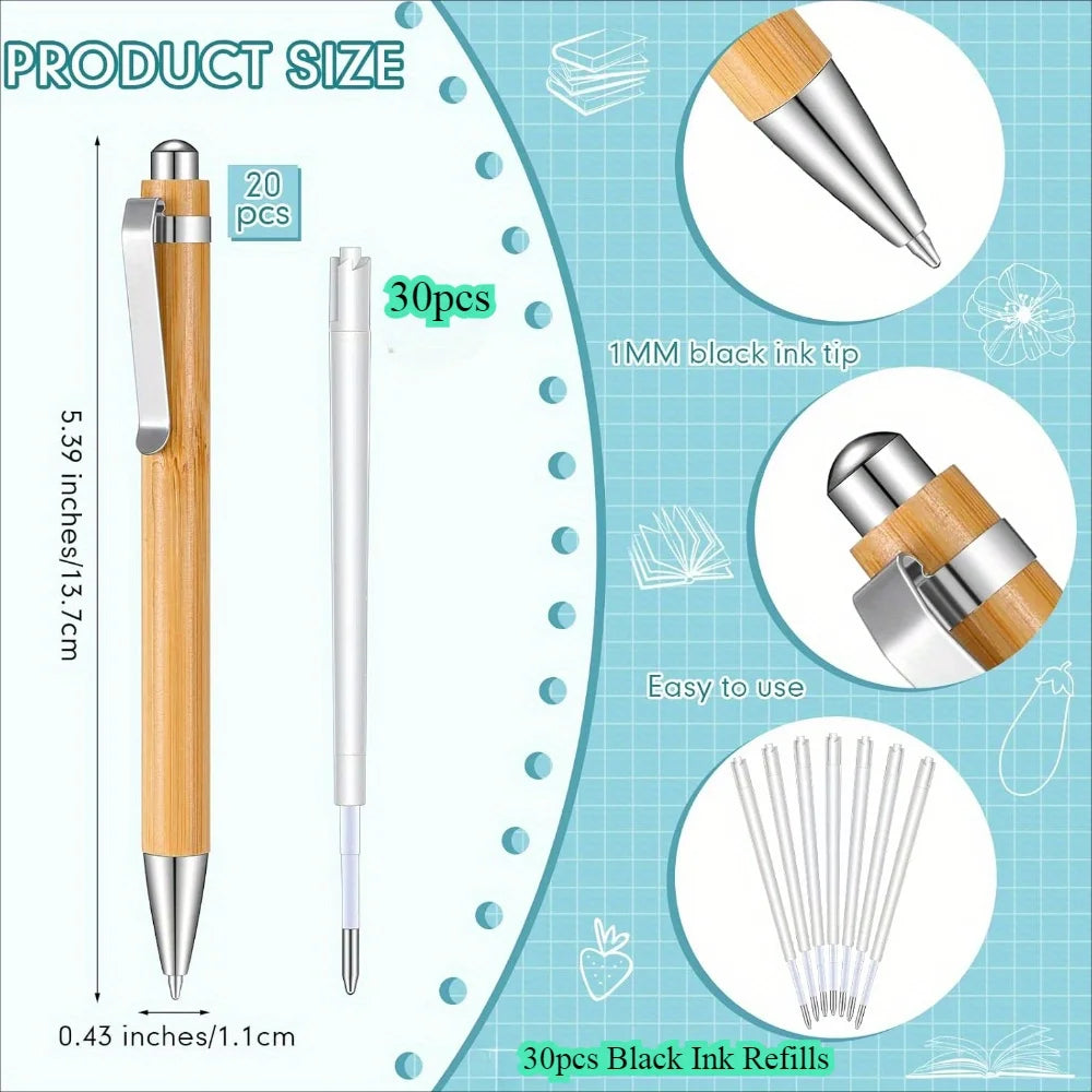50pcs Bamboo Pens Bulk Wood Natural Retractable Pen with Extra Black Ink Refills Ballpoint Pen(20pcs Pen+30pcs Refills)