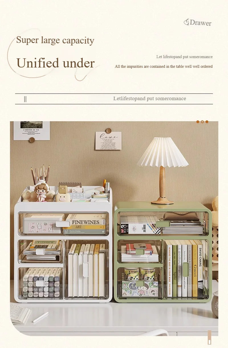 4-Tier Drawer Desktop Organizer - Transparent Multi-Layer Storage Box, Spacious Dustproof Stationery Holder for Office/Home/Study Desk (34x24.2x37cm)