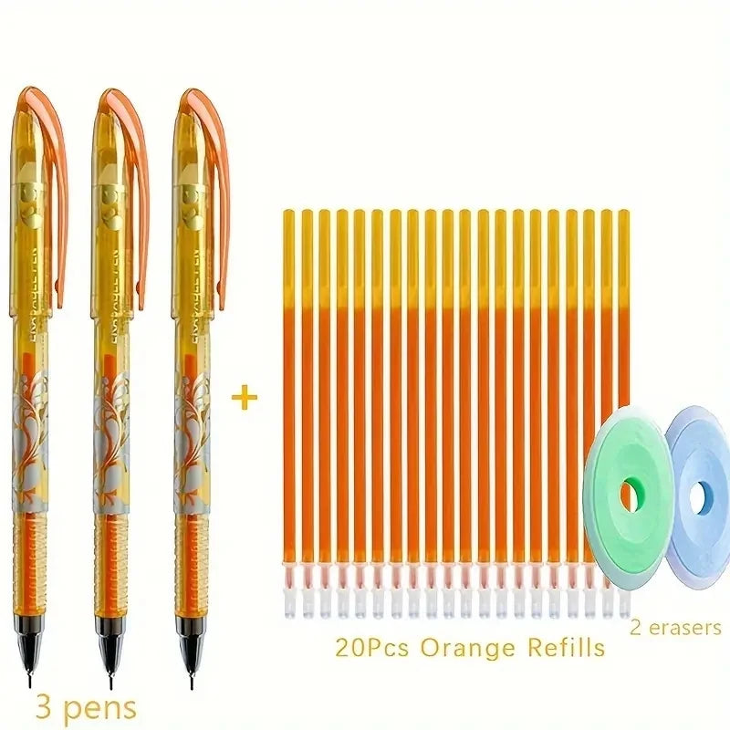 25pcs/set 0.5mm Erasable Gel Pen Set 6 Colors Ink Writing Gel Pens Refills Rods Washable Handle for School Office Stationery Supplies(3pens+20refills+2eraser)