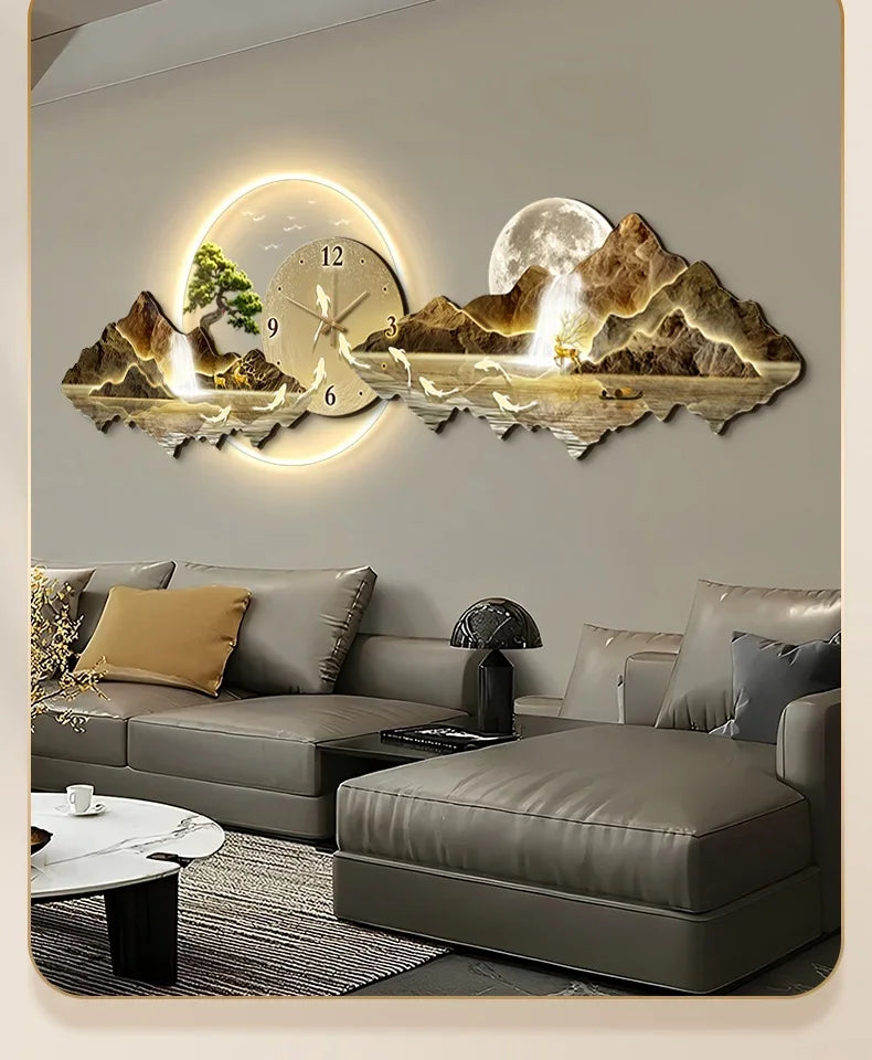 Large Illuminated Wall Clock Silent Nordic European Luxury Art Wall Clock Design Modern Orologi Da Parete Home Decoration